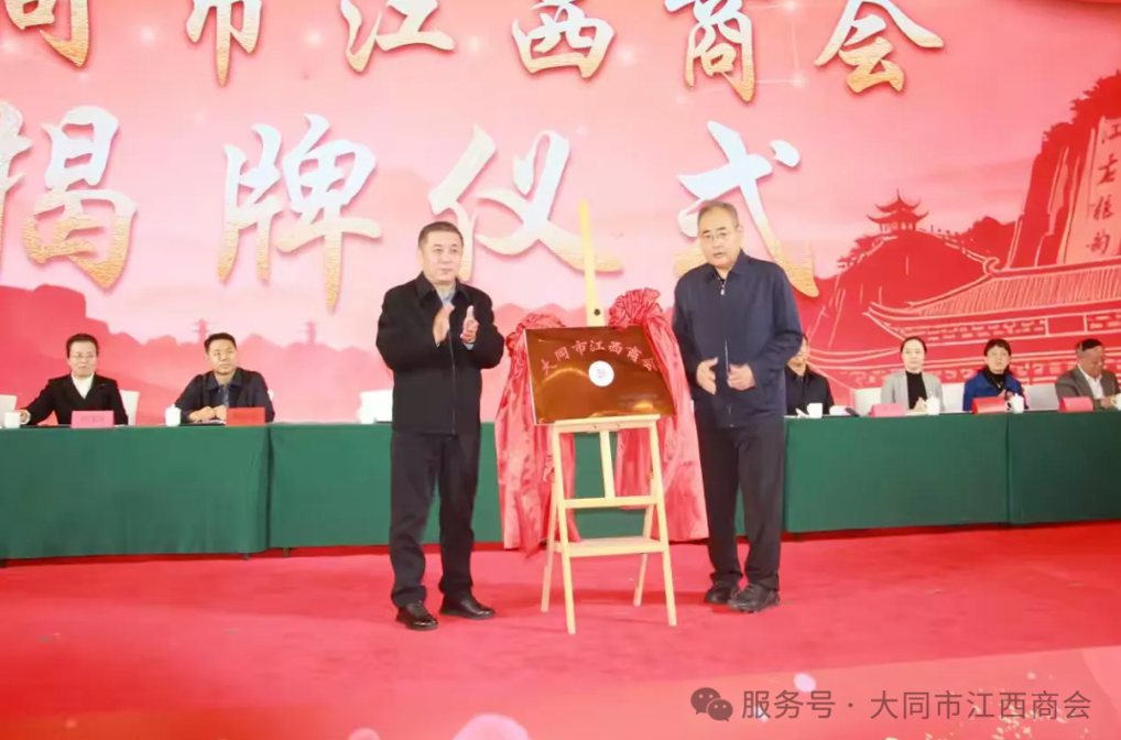 一瞬光华启新程、磅礴商海开新篇!主席台上,参会领导和章文兴会长共同点亮大同市江西商会成立启动柱,并为大同市江西商会揭牌,全体参会人员共同见证了大同市江西商会正式成立的辉煌时刻,现场气氛达到顶点,热烈的掌声经久不息,大同市江西商会至此扬帆起航!